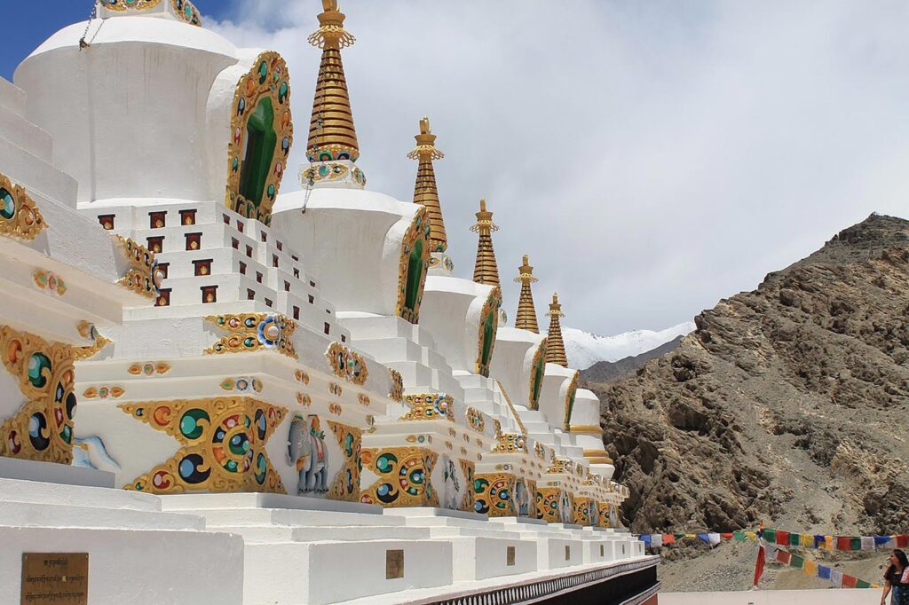 Na chegada em Leh, visitas serão organizadas ao Shey Palace e Gompa onde encontra-se uma estátua de cobre de 7,5 metros de altura de Buda, banhada a ouro. Segunda oportunidade: o Thiksey Gompa: Thiksey é um dos maiores e arquitetonicamente mais impressionantes Gompas. São mosteiros budistas encontrados principalmente nas regiões do Himalaia, como Tibete, Nepal, Butão e Índia. Eles servem como centros de prática religiosa, meditação e estudo para monges e praticantes do budismo tibetano. Os gompas são conhecidos por sua arquitetura distinta, que frequentemente inclui grandes estátuas de Buda, murais coloridos e rodas de oração.