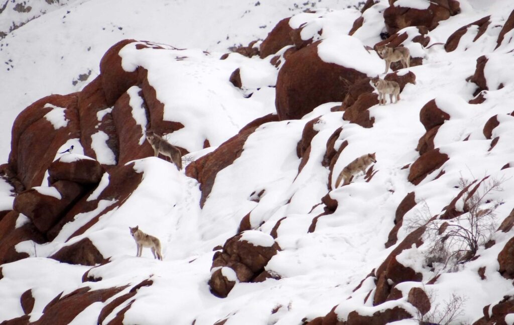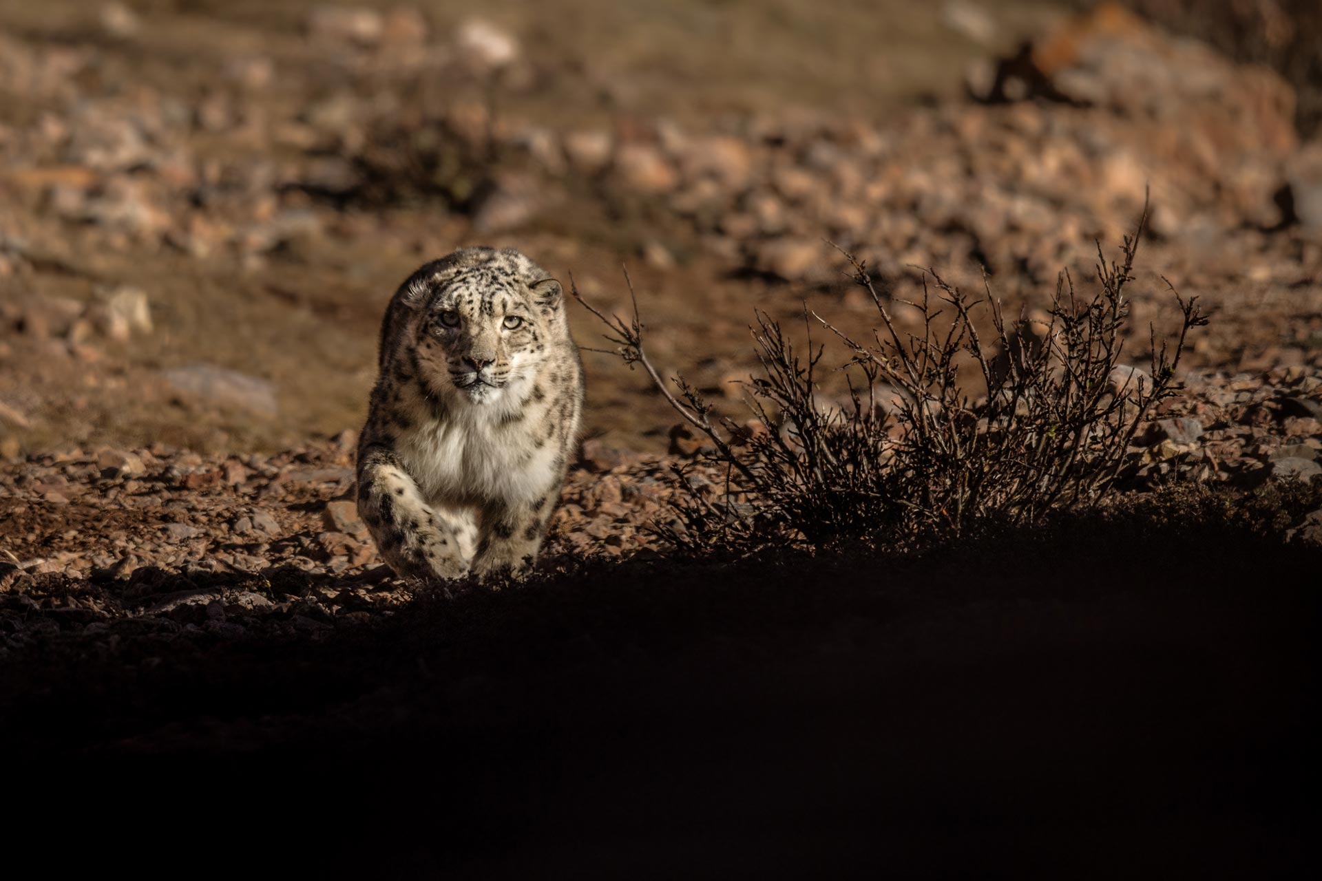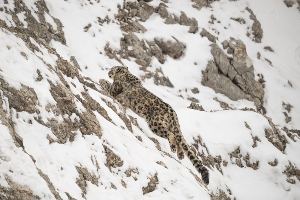 Os leopardos-das-neves são crepusculares, o que significa que são mais ativos ao amanhecer e ao anoitecer. Os observadores deixam o acampamento ao amanhecer, espalhando-se em diferentes vales. Eles examinam as linhas de cume e encostas em busca de vida selvagem, relatando quaisquer avistamentos de volta ao hotel.