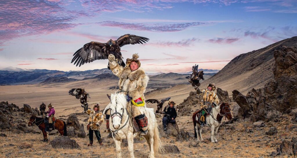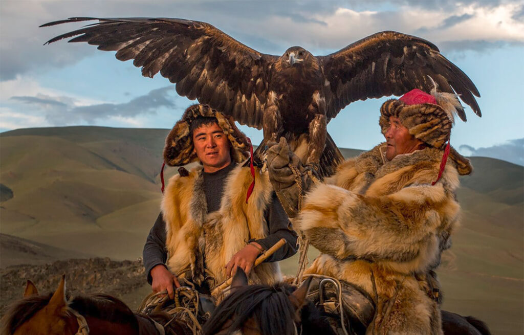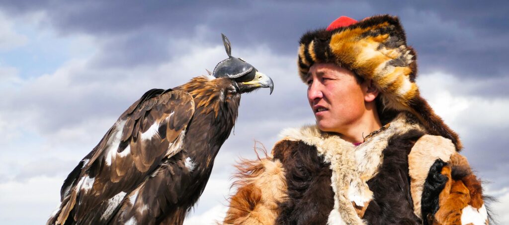 A população cazaque da província de Bayan Olgii continua a viver de acordo com as suas tradições ancestrais. Os cazaques são conhecidos pela sua capacidade de caçar pequenas presas (raposas, lobos, etc.) com as suas águias douradas. Participe do Festival da Águia, com a presença de mais de 70 a 100 falcoeiros cazaques e suas magníficas águias, e depois vá caçar com um falcoeiro.