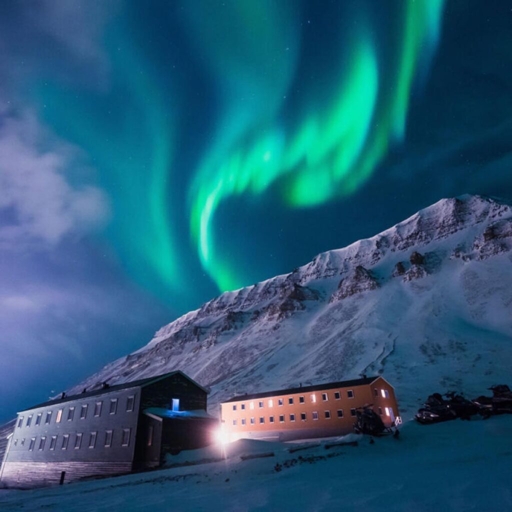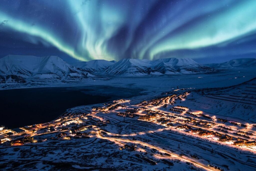 Onde fica: no extremo do Ártico Noruegês, perto do Polo Norte. O arquipélago é pouco habitado, sendo a cidade principal Longyearbyen. A cidade oferece um conjunto interessante de amenidades que incluem uma escola secundária, uma piscina pública, , um pavilhão desportivo, umsupermercado, três pubs, quatro hotéis, uma iogreja, um cinema e algumas lojas de roupas. Assim como na Groenlândia, não há estradas e as pessoas viajam principalmente de barco. O aeroporto de Longyearbyen é o ponto de desembarque e partida de muitos cruzeiros e expedições. Um destino perfeito para amantes da natureza, de grandes espaços selvagens, onde você pode fazer caminhadas, andar de caiaque, até mesmo andar de trenó puxado por cães. Cada estação oferece experiências diferentes e paisagens contrastantes, entre grandes espaços abertos, fiordes e geleiras.